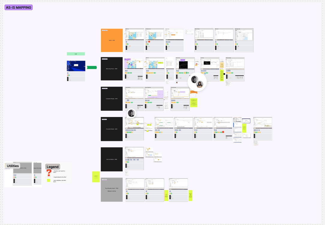 At the same time, we analyzed the legacy platform to map out its core flows, identify friction points, and highlight potential areas of improvement. These findings were brought back to users for validation, ensuring that our understanding aligned with their lived experience.