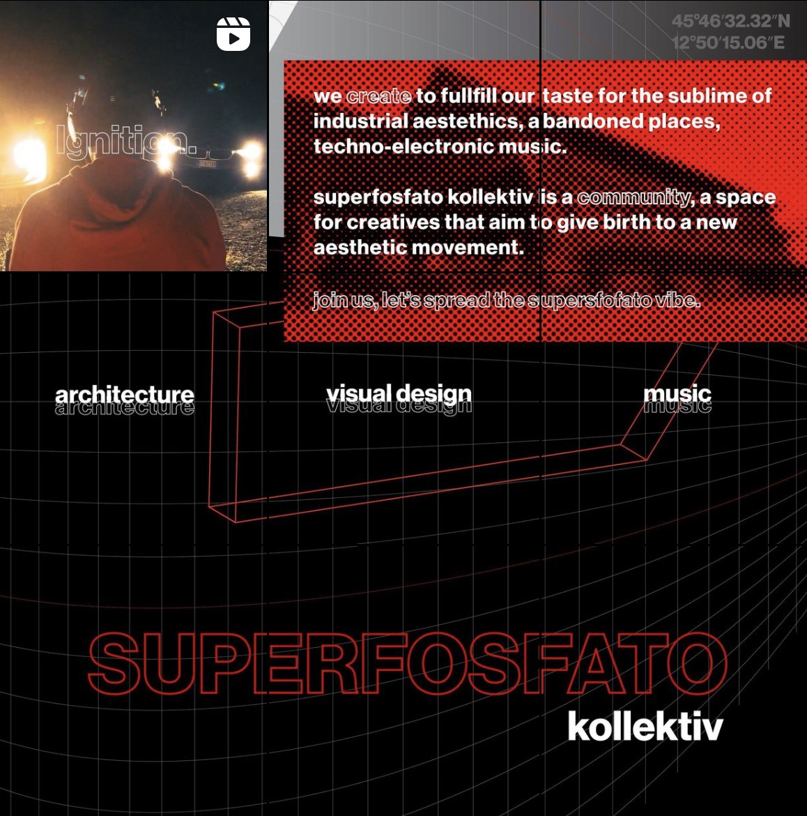 The name "SUPERFOSFATO" refers to a fertilizer that is commonly used in agricolture, which was also produced in an important factory based in Portogruaro, called Perfosfati, from which we take the name, and on which we based our identity, as its abandoned monumental building always characterised the territory and therefore represented a perfect visual and metaphoric "temple" were a rising creative young, underground movement could be based in.